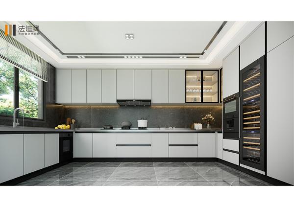 Elevate your home with the timeless appeal of Fadior's Modern U-Shaped Kitchen Cabinet. Crafted entirely from high-quality stainless steel, this innovative design combines contemporary aesthetics with unmatched durability. The spacious U-shaped layout maximizes functionality, while the integrated wine cooler ensures your collection is stored at the perfect temperature. With sleek light gray tones and a minimalist design, this kitchen cabinet embodies sophistication and practicality. Fadior’s expertise in full-house stainless steel customization guarantees a kitchen that stands the test of time in both style and performance.